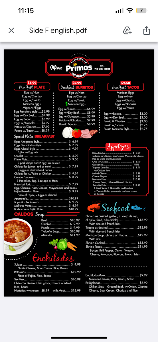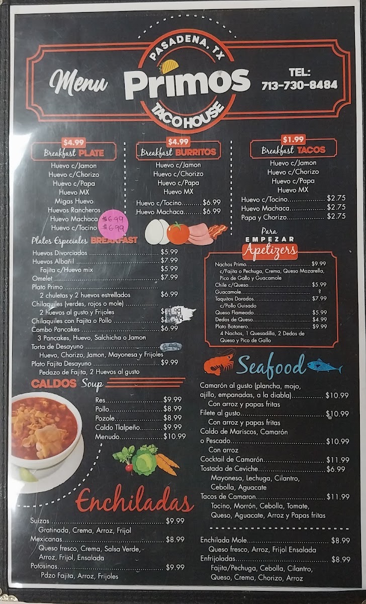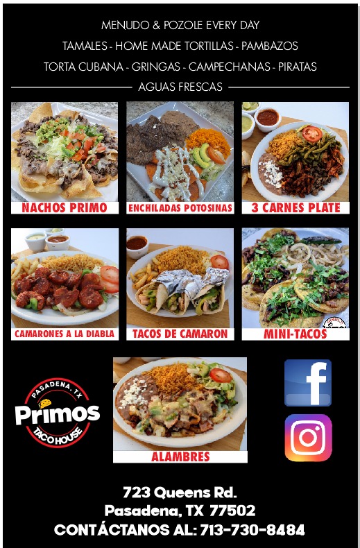 Welcome to Primos Taco House, a culinary gem nestled in Pasadena, TX, at 723 Queens Rd. This vibrant eatery offers a delightful menu that truly honors the spirit of homemade Mexican cuisine. The moment you step in, you’re greeted by the welcoming aroma of fresh ingredients and the promise of deliciousness.